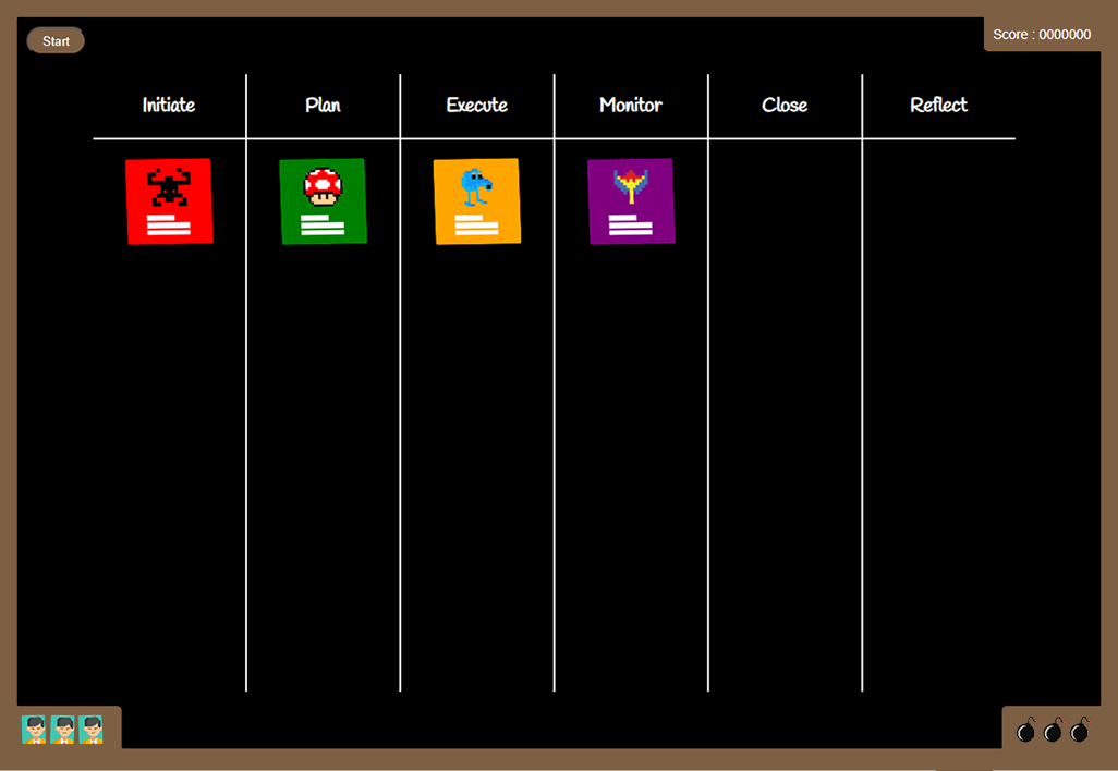 Move the tasks through the columns to keep the Kanban clear and stop work overloading. Clear cards by getting three the same in a column.